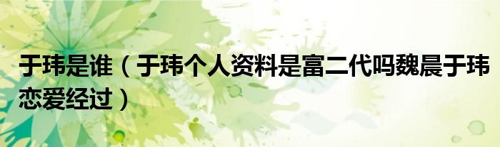大家好,綜合小編來為大家講解下。于瑋是誰,于瑋個人資料是富二代嗎魏晨于瑋戀愛經過很多人還不知道,現在讓我們一起來看看吧!