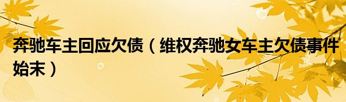 大家好,綜合小編來為大家講解下。奔馳車主回應(yīng)欠債,維權(quán)奔馳女車主欠債事件始末很多人還不知道,現(xiàn)在讓我們一起來看看吧!