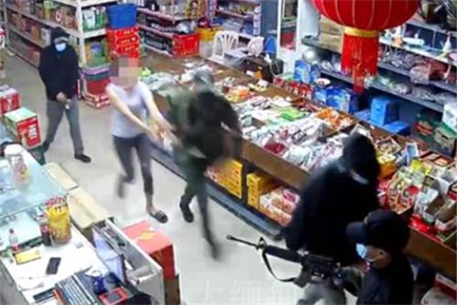 從曝光的現場監控來看,超市門口一輛白車停穩之后下來四名男子,全部都戴著口罩和帽子,顯然就是為了躲避店內的監控攝像頭,其中一名男子手持長槍,有兩名男子分別持短槍控制超市的門口,一名身穿迷彩服的男子則跑向柜臺內徑直走向證明中國籍女店員,隨后將手銬直接靠在女子的手上并將其拖拽出超市,對于這名女子的苦苦哀求,綁匪并不理會。