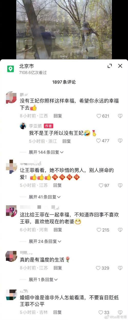 在某視頻軟件里,李亞鵬發(fā)布的一篇名為歲月春已半,夢(mèng)想正前進(jìn)的視頻。視頻當(dāng)中李亞鵬抱著自己的女兒和妻子一同欣賞美景,時(shí)不時(shí)的與妻子一同交流,感悟人生。就是這個(gè)視頻引起了大家的關(guān)注,畢竟有一個(gè)網(wǎng)友的留言是時(shí)間引起了熱議,網(wǎng)友留言中的王妃和李亞鵬的前妻王菲屬于同音詞,相信李亞鵬也看出了此網(wǎng)友的用意,不過為了維護(hù)家庭的和睦,李亞鵬還是對(duì)此網(wǎng)友作出的回復(fù)。在李亞鵬作出回復(fù)之后,迅速登上了熱搜,有人聲稱在離婚之后李亞鵬還是在繼續(xù)蹭王菲的熱度,也有人表示李亞鵬至今沒有忘掉前妻王菲。李亞鵬的這一句回復(fù)可能是幽默,至于忘沒忘掉前妻王菲,不是外人能夠揣測的,只不過因?yàn)橐痪渫嫘υ捯疬@么大的關(guān)注,也是無中生有。