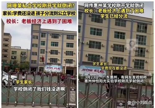 北京時間3月23日,位于廣東惠州仲愷高新區(qū)的一所陽光實驗學(xué)校目前已經(jīng)倒閉,相關(guān)學(xué)生已經(jīng)被派往附近的小學(xué)就讀,許多的學(xué)生只能夠收拾東西,打包回家,目前這一個事件已經(jīng)引起了當(dāng)?shù)亟逃趾兔癖姷膹V泛關(guān)注度。根據(jù)相關(guān)調(diào)查,一些家長證實了此次事件屬實,學(xué)生們雖然已經(jīng)打包回家,但是學(xué)費并沒有退還,目前大部分學(xué)生還沒有收到有關(guān)上學(xué)的通知信號。