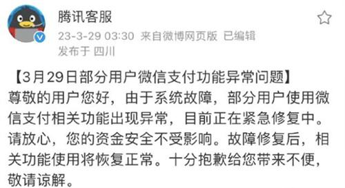 騰訊客服聲稱部分用戶的微信支付功能出現了異常,由于整體的系統出現了故障,目前有相關的技術人員正在緊急的修復當中,并且請廣大的市民朋友們放心,微信支付里面的資金是不會出現任何的問題。故障修復之后就能夠正常的進行使用,并且很抱歉給廣大網友帶來不必要的麻煩。對于這件事情,有許多網友認為騰訊旗下的兩款通訊軟件在或多或少的時候會出現一些問題,沒必要大驚小怪的。不過出現問題總是需要去進行解決,否則會給使用這兩款軟件的人帶來一些不必要的麻煩。目前我國最大的兩款通訊社交軟件是QQ和微信,大部分的人使用的也只是這兩款軟件。