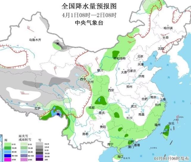 明天開始,大范圍雨雪將鋪展開來,內(nèi)蒙古河套地區(qū)、西藏東部、西北地區(qū)東部、華北南部和西部、黃淮西部、江漢、江南北部、西南地區(qū)東北部等地部分地區(qū)有中到大雨,其中,河南南部、湖北北部和南部、湖南北部等地部分地區(qū)有暴雨或大暴雨。預(yù)計本輪雨雪天氣過程主要出現(xiàn)時段在4月2日至4日。