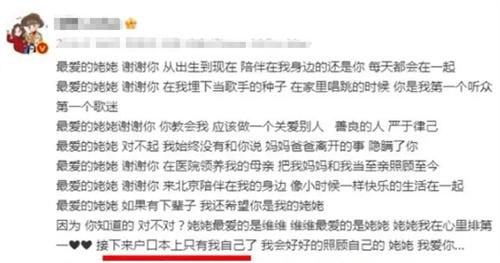 劉維還在文章中聲稱,自己的母親是姥姥在醫(yī)院當中領養(yǎng)的,并不是姥姥的親生子女,不過這樣也并沒有影響家庭中的和睦關系,劉維在文章中說如果有下一輩子,自己還愿意和姥姥成為一家人,劉維還表示,自己沒有將父母離世的消息告訴姥姥,聲稱姥姥在自己的內心中永遠都是排在第一名的。只不過姥姥去世之后,接下來家中的戶口本就僅剩自己一人了,未來的道路也將依靠自己一個人行走。