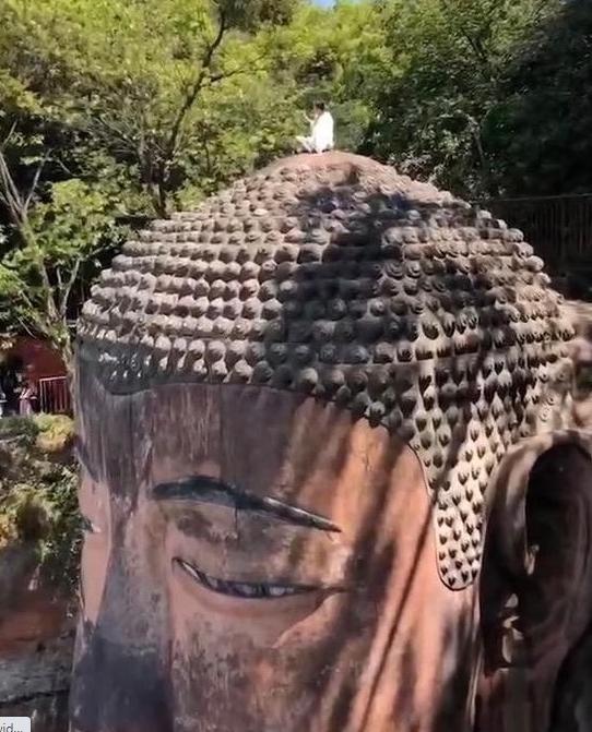 近日,一段女子在樂山大佛頭頂上打坐的視頻在網絡上熱傳。視頻中,一位身穿白衣的女子盤腿坐在大佛頭頂上,引來眾多游客圍觀,有人也呼喊著要她下來。