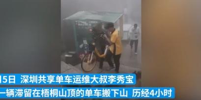 該輛小黃車的所屬公司在看到網友發的帖子之后,也派出了專業的運維人員爬到山頂之后尋找該車輛,李秀寶就是這一次派出的運維員,他在快到山頂的位置找到了網友爆料的這輛小黃車,經過現場勘查之后,發現這輛小黃車的車輛鏈條以及不同的零部件都已經被人為損壞,已經沒有辦法正常使用,需要通過人力將他扛下山,李秀寶將這輛小黃車扛下山,一共用了4個多小時。