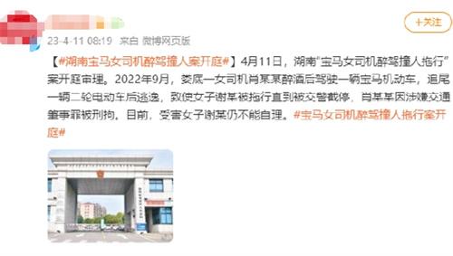 28歲居住在湖南婁底的寶馬女司機肖某平因酒駕超速追尾,騎電動車的謝女士,并直接將解女士拖拽了2公里,針對該起事件,有記者媒體朋友,從受害者家屬,到口中獲得了解,在案發半年之后,北京時間4月11日,肖某平因涉嫌交通肇事以及危險駕駛罪一案,在婁星區法院正式開庭。