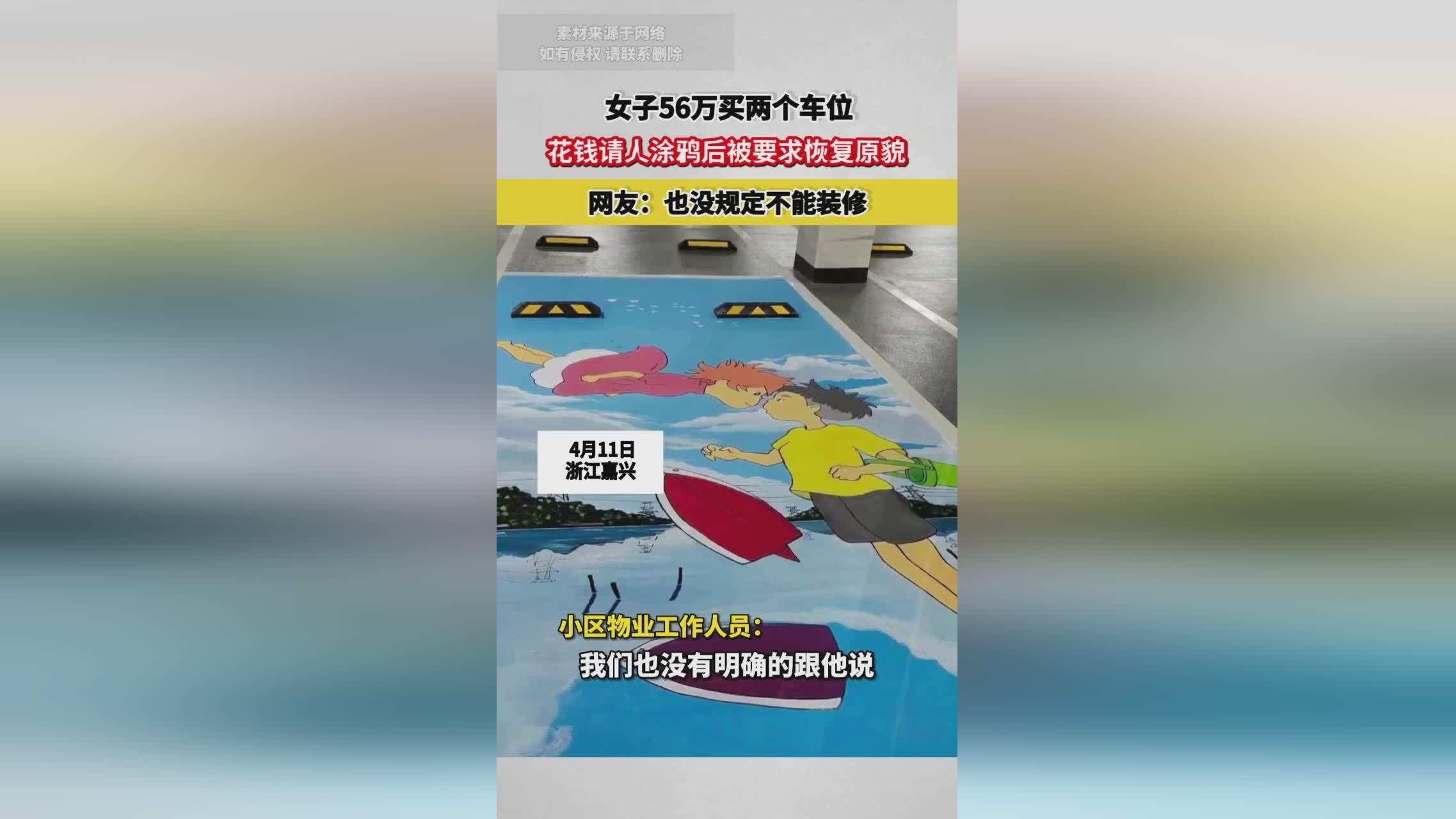 女子28萬元買兩車位涂鴉被要求復原近日在網上引起熱議,根據報道這位女子來自于浙江嘉興,自己花錢購買兩個車位,在兩個車位分別進行涂鴉畫上可愛的卡通人物,在涂鴉之前已經和小區的物業公司提前做好溝通,物業公司工作人員提前告訴業主如果進行涂家將不再保修,女子接受之后就開始對兩個車位涂鴉,涂鴉后立馬被物業公司要求,將車位恢復原樣。物業公司還表示并沒有明確的告訴女子可以給車位涂鴉,現在對女子涂鴉的車位作出整改,提出一個解決的方案,該女子表示如果要將自己車位恢復原樣,需要物業公司來進行賠償損失。