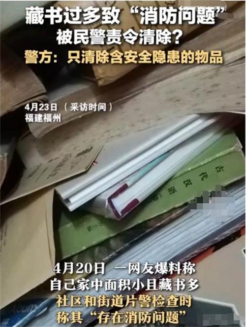 最近,福州市一名姓陳的網友在網上發帖,聲稱自己平時喜歡買書,于是家中便堆放了很多的書籍,在4月20日的時候有社區工作人員來到自己家中,說家中堆放的這些書屬于易燃物品存在消防隱患,要求陳先生立即對這些書籍進行整改,并限期十天內整改一空,這件事情在網上引起了網友的熱議,針對此事媒體才采訪了陳先生所在的社區工作人員,該工作人員稱,陳先生所說的整改是當時工作人員出于善意所做的提醒,并非要求陳先生將書籍必須清空。