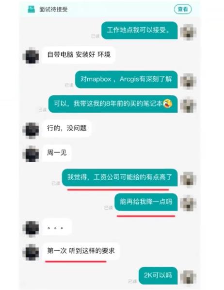 據了解,這位求職者在某招聘網站上看到某公司在招聘程序員的職位,便向該公司發起了聊天。在溝通中,公司表示基本工資為6000元,加班費用大約為8200元,問求職者是否能接受。然而,這樣的薪資顯然不符合當地市場和程序員的報酬標準,但求職者并沒有直接拒絕,而是以巧妙的方式順著HR的話說,詢問能否降到2000。