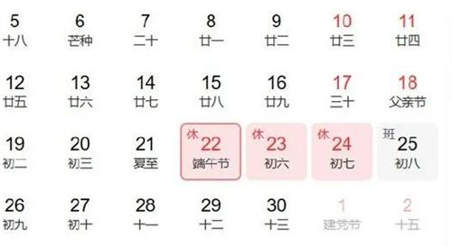 五一小長假已經(jīng)徹底結束,在6月份我們還要迎來一個端午節(jié),今年的端午節(jié)和五一小長假遭遇了同樣的問題面臨調休。端午節(jié)的日期是在6月22號當天是星期四,今年的端午節(jié)放假時間是在6月22號到6月24號總共是三天,6月25號星期天上班,也就是說端午節(jié)法定放假一天25號那天算調休,端午節(jié)放假之后網(wǎng)友就需要接連上6天的班。很多網(wǎng)友就表示那還不如直接放一天為什么要調休?