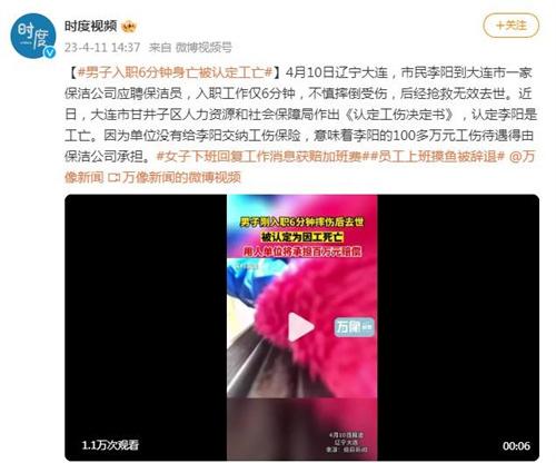2021年6月,李某在入職大連某保潔公司6分鐘后不慎摔倒受傷,經(jīng)搶救無(wú)效死亡,李某的妻子是張某經(jīng)過(guò)一年多的勞動(dòng)仲裁、一審、二審,終于拿到了遼寧省大連市甘井子區(qū)人社局作出的《工傷認(rèn)定書》,認(rèn)定李某是工亡,保潔公司將承擔(dān)李某的100多萬(wàn)元工傷待遇。保潔公司現(xiàn)在沒(méi)有明確會(huì)支付工傷保險(xiǎn)賠償,張某也將繼續(xù)打官司,為老公追回賠償。