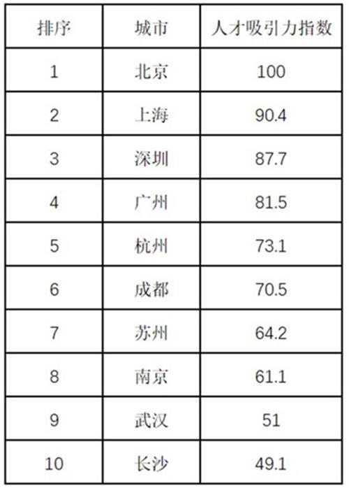 2021年中國最具人才吸引力的10個城市分別是上海,北京,廣州,深圳,成都,杭州,蘇州,武漢,南京,長沙,其中排在前三位的是北京,上海和深圳。北京雖然排名第一,但是從地區分布上來看,是北方唯一一個上榜的城市。從城市地區的分布情況上來看,由于經濟基礎比較雄厚,以及戰略定位比較高,東部城市是人才持續聚集的地區,上榜的城市中有7座,是東部的城市。長沙和武漢是中部的城市,西部地區上榜的城市只有成都。