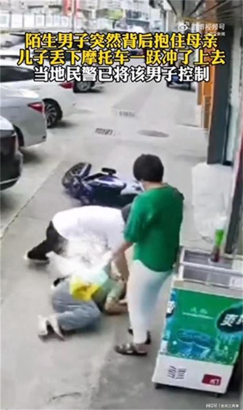 事后,記者采訪這位母親的兒子,據(jù)他稱自己的母親正在樓下買藥,自己則前往附近的早餐店想要去購(gòu)買早餐,正準(zhǔn)備上摩托車出發(fā)的時(shí)候,發(fā)現(xiàn)一名陌生男子突然跑了過來,從自己母親的背后一把抱住了母親,想要對(duì)母親實(shí)施猥褻行為,自己看到這一幕立馬將手中的摩托車丟下,沖向那名男子將對(duì)方放倒制服。