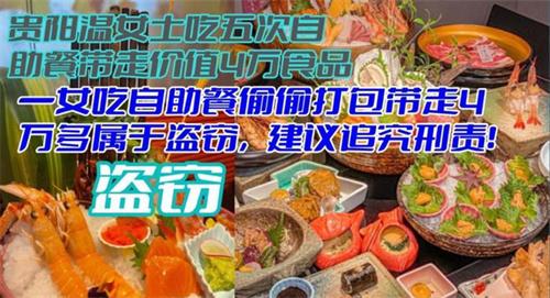 一名貴州貴陽女子連續一個多月都去了同一家自助餐消費五次,五次累計一共點餐45653元,該女子每次都沒有將自助的食材吃完,而是進行了偷偷地打包,店家通過監控發現這名女子的打包行為將她起訴并且將視頻傳到了晚上,從視頻中可以看出這名女子從2022年8月16號到9月1號期間,一共到店內消費五次,每次都用塑料袋將食物進行打包,然后將打包好的食材,裝入隨身攜帶的手提袋,隨后在網上引起了極大的社會關注。