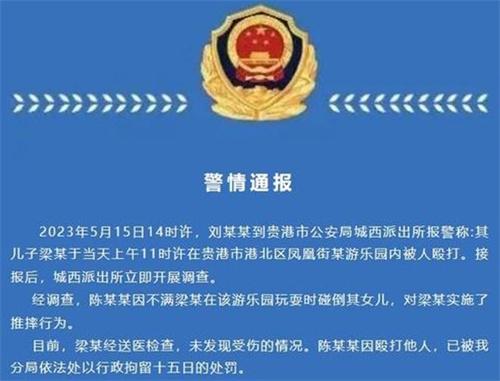 北京時間2023年5月15日下午2點,位于貴港市的一個游樂園內,一名男子連續怒摔男童,警方回應:已將其行政拘留15日。