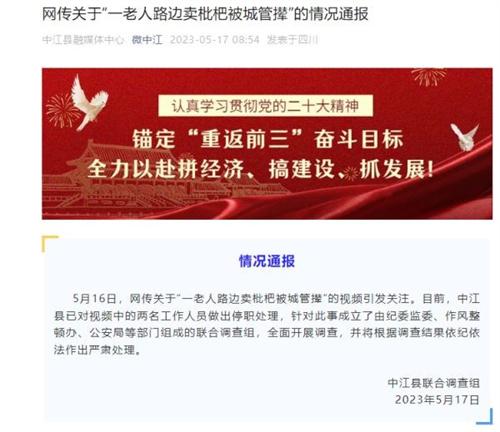 相關(guān)的視頻在發(fā)布網(wǎng)上之后,也引起了眾多網(wǎng)友的關(guān)注。互聯(lián)網(wǎng)持續(xù)發(fā)酵,大爺被城管攆的內(nèi)容也登上了熱搜,并且這件事引起了當(dāng)?shù)卣闹匾暎嚓P(guān)部門對(duì)此作出了回應(yīng)。在回應(yīng)中表示視頻中的兩名工作人員停止處理,針對(duì)此事成立作風(fēng)整頓辦和,紀(jì)委監(jiān)委與公安局等部門組成聯(lián)合調(diào)查組,進(jìn)行全面調(diào)查,依法查處。