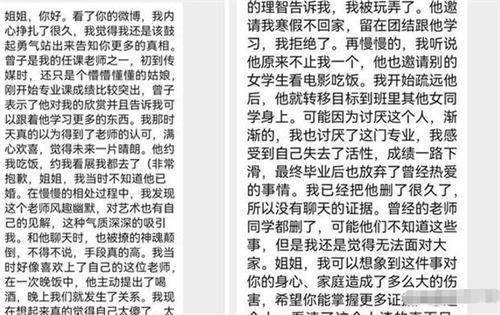 近日,在網上傳來的消息稱有一名女子實名將自己的丈夫給舉報了,在實名舉報信息里面了解到這名女子將自己正在四川傳媒學院雕塑系擔任老師的曾良超給實名舉報了稱自己的丈夫,在工作是多次利用自己職位的關系使用不正當的手段引誘女學生并和女學生發生關系,曾茂超的這種行為已經構成了婚內出軌,舉報消息一經傳出之后,立刻在網絡上引起了社會各界關注。
