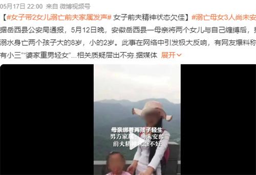 5月17日先前帶著兩個(gè)孩子輕生案件的男方家屬發(fā)聲,表示現(xiàn)在死者還沒有安葬,王女士的前夫則精神狀況并不是很好,這一聲明引起了人們的關(guān)注。