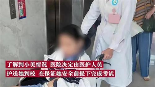 據了解,這起事件中的女生小美年僅15歲,在當天上學的時候突然出現腹痛的現象,經過醫生的診斷確診為黃體破裂,面對這樣的突發疾病,小美和她的家人都顯得十分焦慮,因為接下來小美就要去面對中考,幸運的是小美和她的家人得到了醫院的熱情幫助,在醫院的協調之下,醫護人員護送小美到達學校,在保障小美的安全前提下,幫助小美完成了考試。