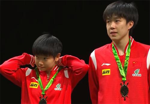 這一次屬于孫穎莎、王楚欽兩個人第5個是世乒賽的冠軍,目前兩個人混雙都已經完成衛冕,成功獲得冠軍,之前還在男女雙以及團體比賽獲得過冠軍。然而頒獎典禮的時候卻出現一個小的插曲,兩個人并沒有等來嘉賓發的花,當時季軍和亞軍都已經有花,冠軍的花在禮儀小姐的手上,頒獎嘉賓直接給兩人頒發獎杯。頒發完獎杯進行奏國歌的環節,此時禮儀小姐手中的花在回頭的時候不小心掉了,還是早田希娜將花撿起來。另外早田希娜在頒獎禮上感覺非常的高興,獲得銀牌,與早田希娜不一樣的就是張本智和,似乎很不開心,他的心目中的目標是冠軍。