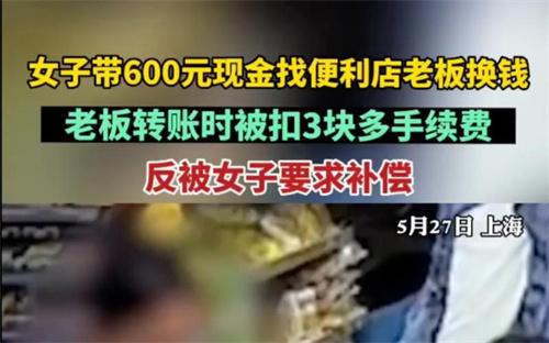 5月27日一名女子手持600元現金到上海一個便利店找老板換錢。在進行支付時誤點了花唄被扣除了三塊多的手續費。女子要求老板將手續費補償給老板,并且表示自己給老板的是600元現金,現在收到的卻只有597。老板認為女子的要求非常不合理,因為當時自己支付的確實是600元。而且是這名女子要求老板給自己換錢的,只是好心幫忙。女子自己的手機開通了花唄收款。老板在進行轉錢的時候,也并沒有注意是通過花唄還是余額扣的款。老板認為賺錢過程中所產生的手續費不應該由自己來支付。但是這名女子卻在便利店中鬧著不走,讓老板覺得非常無奈。連店中買東西的阿姨都覺得此事不合理,看不下去,表示愿意支付這三元,要女子不要爭吵。這名女子卻真的厚著臉皮伸手向阿姨要錢,但是被老板制止,老板覺得這種是屬于原則上的問題,不能妥協,要求報警處理。