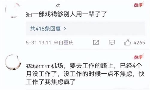 對于一部分網友說明星賺的錢夠普通人生活很久,或者夠更加困難的家庭生活一輩子,但其他網友也作出感慨,沒有人會希望坐吃山空,也沒有人會嫌錢多。談好的工作黃了,每天閑著看不到未來,確實是會感到焦慮,還表示審閱的意思,就是鼓勵大家去調整心態,積極的面對,通過不同的方式讓自己充實起來,這樣就能為接下來的機會做好充足的準備,并且抓住機會。