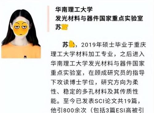 近日,一則關(guān)于學(xué)術(shù)妲己的話題送上了熱搜,而接連把華南理工大學(xué)以及四川大學(xué)送上了熱搜,也讓大家都了解到了這個(gè)學(xué)校。而該帖稱來自華南理工的一名女博士姓蘇,他是于2019年入學(xué)之后,一次插足了導(dǎo)師顧某的婚姻,此后便顧某與原配離婚。在這位蘇姓的女博士,發(fā)表高水平的論文,而這些論文都跟他共同的較高的位置,甚至還有一篇是包括nature,在后續(xù)的博士論文答辯之后,也引來了很多吃瓜群眾的圍觀。