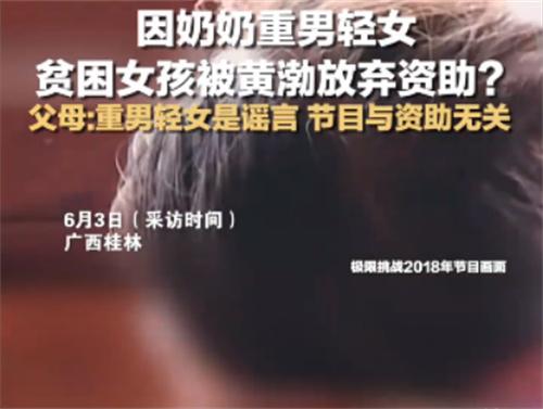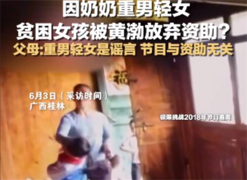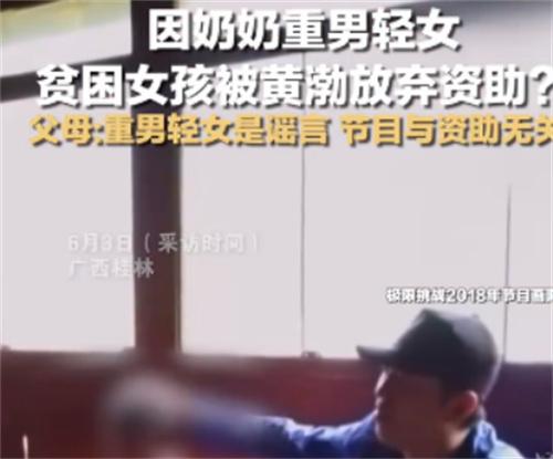 近日,黃渤在參加綜藝節目的時候發現自己資助的一位女孩,由于家庭中重男輕女的思想導致這位女孩根本用不到自己的資助資金,于是便選擇放棄對這位女孩的資助,一時之間眾多網友指責女孩的父母。6月4日,女孩父母公開回應黃渤放棄資助的事件,聲稱自己本來也不需要得到黃渤的資助,他們的這個聲明讓眾多網友感到憤怒,很多網友發言稱黃渤手里的資源可以幫助他們的家庭,讓小女孩能夠走出大山,讓女孩有一個更精彩的人生,遇到這樣的父母簡直就是女孩的悲哀。