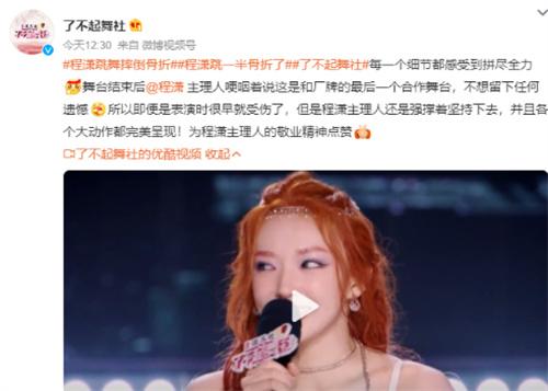 程瀟也因為本次突如其來的意外被迫中斷跳舞,當時就因為太過于疼痛而直接坐在地上露出了痛苦的表情,不過程瀟還是忍著疼痛堅持完成了本次表演的內容,不想給自己也不想給粉絲還有觀眾留下任何的遺憾。