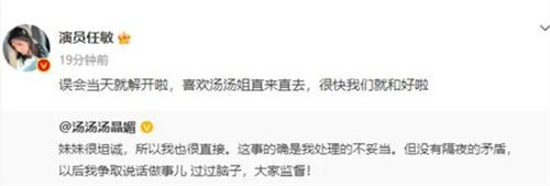 近日任敏和湯晶媚在參與一檔真人秀節(jié)目的時候,就在節(jié)目中因為組建樂隊的事情產(chǎn)生了矛盾引發(fā)了粉絲的熱議。這起事件也讓人聯(lián)想到了娛樂圈中明星和明星之間的關(guān)系以及矛盾,同時也引發(fā)了粉絲對于真人秀節(jié)目制作,包括參與節(jié)目錄制的明星嘉賓的真實性產(chǎn)生了一種質(zhì)疑。任敏也在自己的微博賬號中,表示她和湯晶媚的誤會在當(dāng)天就解開了,就喜歡湯姐這種直來直去的性格,兩人很快就和好了。