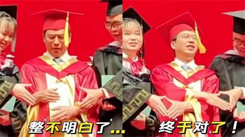 至于這名女生可能也沒有當一回事,畢竟要畢業了很高興,想要給自己留下一個美好的回憶,也就自然的幫助校長去做出一個正確的手勢,這樣的畫面也是挺美好的,顯得這名女大學生很勇敢,也是年輕人該有的樣子,想做就做,不留任何遺憾。對于高校畢業生來講,與大學生再見時,都想為自己留下更多美好的大學回憶,畢業生都會穿上學士服和老師同學在校園打卡拍照,特別是女大學生是很喜歡拍照的,在拍照時也比較在意拍照的手勢和動作,也想讓自己最青春漂亮的一面記錄下來,對合影者要求有一點高是可以理解的。