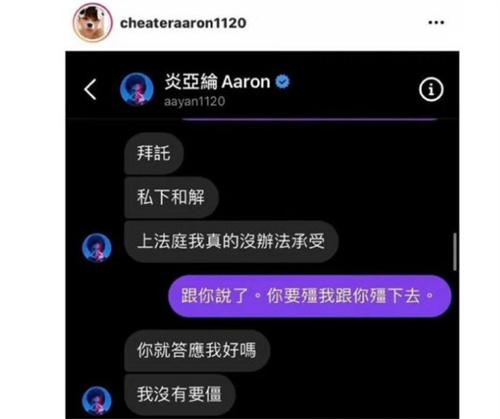 從這位網友公開的聊天記錄來看,炎亞綸希望能夠和自己私下里和解,表示如果這件事情鬧上了法庭是自己不能承受的事情,從聊天記錄上來看,炎亞綸說話似乎有一些卑微,或許他是有一些把柄在對方的手中,很多網友在這件事情曝光之后,紛紛表示臺灣地區雖然地方不大,但是瓜卻非常大,還有網友對此表示,炎亞綸目前已經沒有任何房子可以坍塌了,早就已經成為一片廢墟。