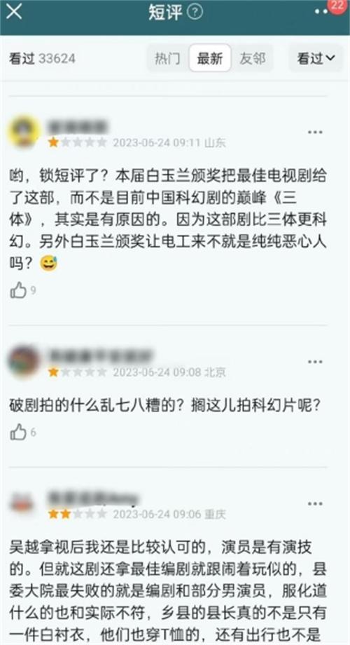 近段時間,一部電視劇名叫縣委大院,是獻給黨的20大的重要電視劇,講述了胡歌所扮演的新舊縣委大院里面先后兩任同事在新時代的大趨勢大變革之下順勢而為的一路前行,艱苦奮斗,縱橫上下實現理想的一個故事。這部劇自從播出以來就受到過廣大觀眾的喜愛和好評,豆瓣的評分也一度達到了8.0分,同時也彰顯了這個電視劇的高質量和高水準,不過近段時間也有網友發現這部劇的豆瓣評分突然下降到6.7分,甚至有人進行惡意刷分,試圖影響聚集的口碑和影響力。這種行為和做法也是引起了很多人的不滿和反感,認為這是對劇集的不尊重和不公平,也是對觀眾的誤導和欺騙,惡意刷分是一種不道德的行為,無論是出于什么樣的目的,都是對觀眾和創作者的不尊重。