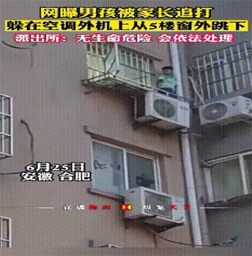 北京時間6月25日,安徽合肥長豐縣水家湖一小區發生了一起令人痛心的事情,你七歲的小男孩被家長拿著桿子打,男孩躲無可躲,最后只能夠跑到五樓陽臺。當時家長并沒有停手的跡象,仍然拿著桿子在打男孩,最后令人擔心的一幕最終還是發生了,小男孩為了躲避挨打,從窗外的空調機上面一躍而下,摔到了一樓地面,不能夠動彈,這件事情也是引發了網友們的關注和熱烈的討論。根據網絡上面上傳的視頻顯示,男孩站在室外的空調機上面,靠墻呈現出一種躲避的狀態,屋內的人從窗口伸出一根長棍,對男孩繼續擊打,最近男孩子無法忍受,就從空調機上跳下。