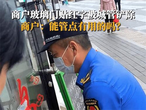 據了解,這家商戶就是因為在自己的門上貼了這幾個字,才導致城管用鏟子來鏟掉,商戶在視頻中還吐槽表示自己弄這些貼紙花了一百多元錢,城管管這些有什么用,管點有用的吧,這樣的靈魂吐槽也引發了網友的共鳴,有人表示自己已經不止一次遭到城管這樣的“無用執法”,對此城管則回應表示現在全區都不讓貼這種東西,因為創文辦檢查到有這樣的情況會扣分,無奈之下他們只能進行鏟除,雙方都沒有激烈的言語沖突,不過在這種平常的對話中卻也滿是無奈和辛酸。