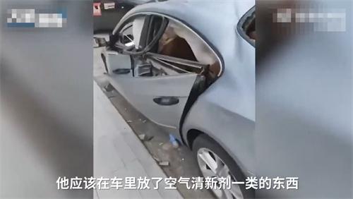 這段視頻被路過的曹先生排到了網上,他表示當時這輛轎車就停在小區門口,突然自己聽到了爆炸的聲音,接下來汽車的車門、玻璃都被炸壞,安全氣囊也彈出,司機的頭發和衣服都被燒毀,幸好沒有出現重大事故。根據曹先生解釋,車內可能放有殺蟲劑、空氣清新劑之類的物品,夏天車內溫度過高導致物品發生爆炸。在此奉勸大家夏季不要在車內防止易燃易爆物品,否則可能會發生危險,另外為了自己的安全,盡量不要在密閉空間內睡覺,在車內開著空調睡著這種行為也有一定的風險。