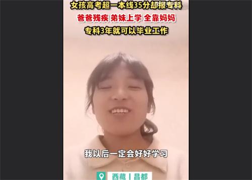 近日,高考結束之后,又有一條關于高考的消息傳來,考生們的高考成績報考學校也引起了網友的關注。據了解有一名女孩的高考考分已經超過了一本分數線35分,但是在選擇學校時卻選擇了專科學校,這一消息也立刻引發了網友們的深入關注。經過對于這起事件在經過了解后得知這名女孩的父親在十幾年前曾經發生過車禍,而家里面還有一個妹妹需要讀書,媽媽一個人工作導致家里的經濟壓力非常大,女孩在報考院校的時候,將自己的家庭具體情況考慮清楚之后,最終選擇了報考專科學校。