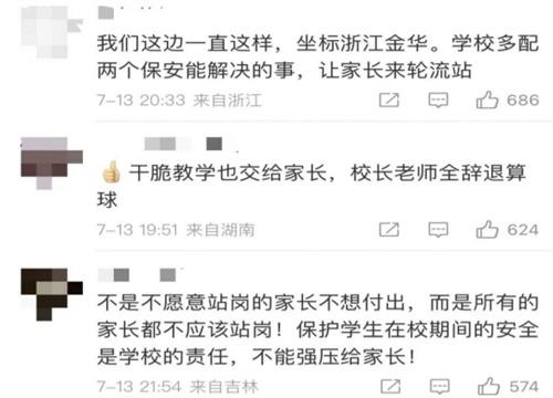 惠濟區在回復中也提到了,校方表示私下調整,家人可以參與其中,有比較多的解決方式。新聞記者聯系到了惠濟區教育局的工作人員,工作人員對此表示學校要求家長執勤的行為是消防組織的,并不是教育局要求的行為。公開資料中顯示綠源實驗小學是一所公立學校,新聞記者也注意到小學要求家長輪流去站崗的事情,在全國各個地區有不少先例,并且多次引發輿論關注。