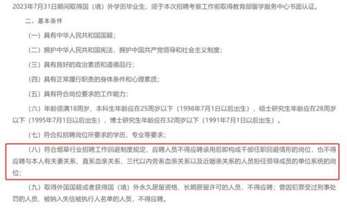 雖然多個(gè)地區(qū)對(duì)于任職回避進(jìn)行了詳細(xì)的描述,但是并不是意味著系統(tǒng)內(nèi)職工的子女完全不能進(jìn)行報(bào)名和錄取,只是針對(duì)一些具有回避性特點(diǎn)的崗位,有著相關(guān)特殊的規(guī)定。這些回避的要求并不是2023年第1次出現(xiàn)。山東煙草局早在2022年的高校畢業(yè)生招聘公告就已經(jīng)提到了工作回避制度的相關(guān)規(guī)定。