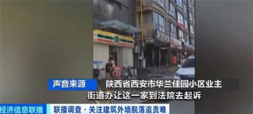 北京時間7月5號黑龍江哈爾濱就有一棟高層住宅外墻保溫材料出現(xiàn)了大面積脫落的現(xiàn)象,7月6號湖南新化某棟高層的建筑外墻瓷磚脫落導致多人受傷,記者通過梳理發(fā)現(xiàn)進入2023年類似高層建筑外墻脫落的事件在我國各地頻繁發(fā)生。進入6月份陜西省西安市某小區(qū)一位80多歲的業(yè)主就被脫落的外墻砸傷維權困難,目前該小區(qū)容易脫落瓷磚砸到的地方已經(jīng)被物業(yè)拉起了鐵絲防護網(wǎng)和警戒線。