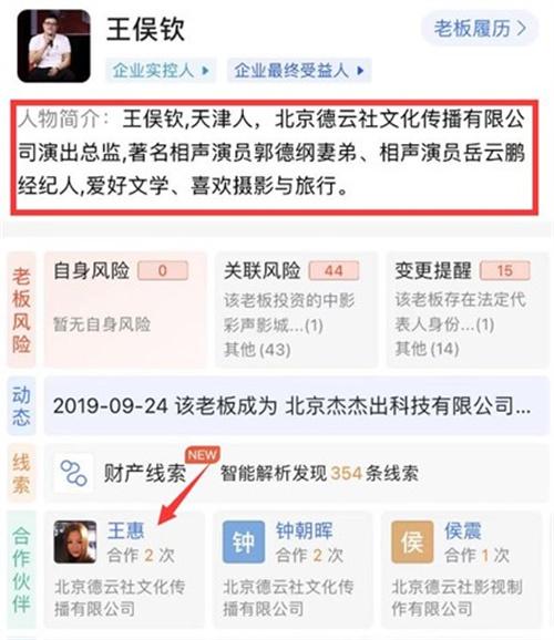 隨著這位知情人士將詳細細節爆料出來之后,也揭露了岳云鵬經紀人的身份,王俁欽。這只是岳云鵬的經紀人同時還是郭德綱現在的妻子王慧的弟弟,王俁欽要管郭德綱叫姐夫,吉林更要管岳云鵬的經紀人叫舅舅。除了是郭德綱的親戚之外,同時岳云鵬的經紀人還是德云社文化傳播有限公司的監事以及股東,持有德云社文化傳播有限公司1%的股份。