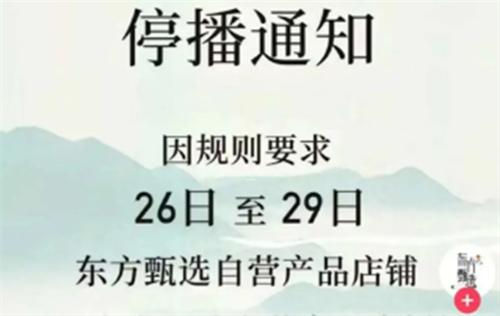 7月26日抖音直播間“東方甄選自營產品”發布了停播通知,表示由于規則要求,26日到29日東方甄選自營產品店鋪以及東方甄選自營產品直播間暫停營業三天。而在當晚19時,東方甄選App宣布自營產品全場85折促銷。