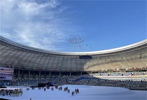 成都運(yùn)動會開幕儀式十分壯觀,在夜幕之下,東安湖體育公園主體育場流光溢彩,華燈璀璨,開幕儀式之前,就有來自成都各大高校的學(xué)生,線上充滿活力的表演,將現(xiàn)場的氣氛烘托得更加熱烈。就在當(dāng)晚的19:58,隨著和平——命運(yùn)共同體的樂曲聲,習(xí)近平與其夫人以及國際大學(xué)生體育聯(lián)合會代理主席埃德一起步入主席臺。隨著倒計(jì)時(shí),觀眾與數(shù)字一起呼喊,在歡聲當(dāng)中絢麗的禮花綻放,開幕式正式開始。