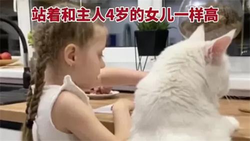 根據《太陽報》《紐約郵報》等相關媒體,在7月27日報道,近日來自俄羅斯的尤利亞·米尼娜有一只特別大的寵物貓,長的和四歲兒童一樣高。米尼娜聲稱自己的貓叫做凱菲爾,是世界上最大的貓,在社交平臺當中發布視頻,顯示米尼娜在廚房做菜時,凱菲爾就直起身子,站起來與米尼娜4歲女兒一樣高。