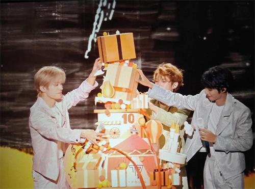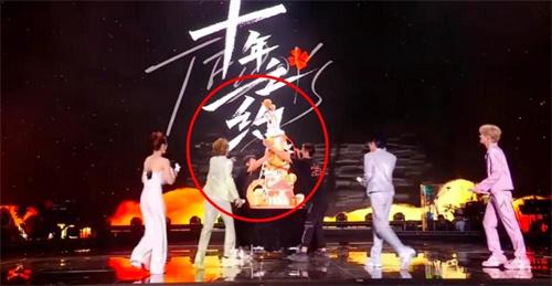 在演唱會上也出現(xiàn)了特別抓馬的環(huán)節(jié),10周年儀式開始的時候工作人員推著蛋糕,但是推到一半的時候,因為蛋糕實在是太高了,差一點就整個塌了下來,就在這個時候TFBOYS三個人趕忙將蛋糕托住主持人還在一旁說道,這就是三個人合力托舉也是10周年的力量。