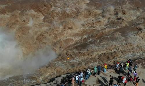 從空中進(jìn)行俯瞰,波濤滾滾的黃河水和往日清瀑飛流的景象全然不同,攜帶著大量泥沙從上游奔騰而下的河水仿佛萬(wàn)馬奔騰,又仿佛千軍萬(wàn)馬一樣滾滾而來(lái),氣勢(shì)極為雄渾。在瀑布口傾瀉而下的姿態(tài)仿佛金瀑飛流,這一壯觀的景象引來(lái)了不少游客。在今年特殊的汛期之下,黃河壺口瀑布竟然呈現(xiàn)出了這樣壯觀的姿態(tài)。據(jù)了解,壺口瀑布是中國(guó)第二大瀑布,也是世界上最大的黃色瀑布,黃河奔流到這里之后兩岸石壁陡峭,河口又收束仿佛壺口,因而得名壺口瀑布。