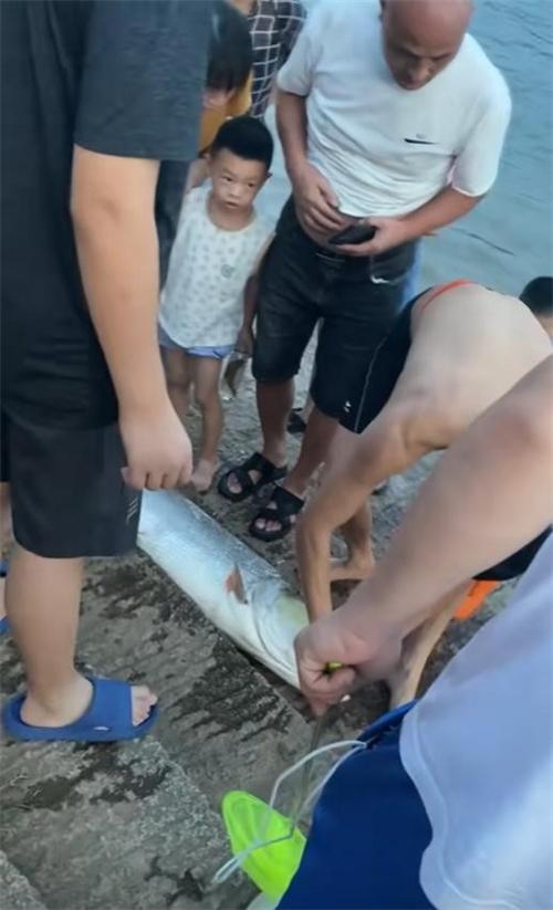 據了解,由于湖南夏天非常的炎熱,這名男子就想要在河水當中游泳,大概游泳的過程當中,無意地發現旁邊有一條大魚在游來游去,該男子下意識的就想要去抓住這條魚,原本以為這條魚并沒有多大,當男子抓到以后才發現這條魚竟然有1m多長,足足有52斤重,從現場流露出來的照片就能夠看得出這條魚身形非常的修長,普通人如果在水中遇到的話,可能都是避之不及。但是該男子的勇氣和實力直接將這條魚給拿下,這讓許多人感到非常的佩服,在水中徒手抓到大魚,可以說是一件非常困難的事情,沒有借助任何的工具。