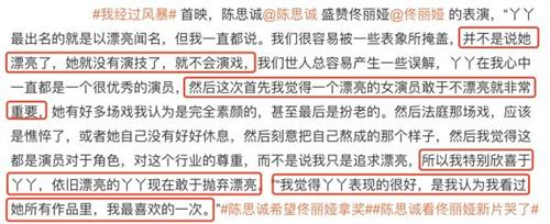 陳思誠在這部影片的首映禮當中表示對于佟麗婭片場時表演特別深刻,陳思誠說佟麗婭在影片當中演技極為出色,帶來了特別強烈的觸動,對于角色的理解深入,也有細膩的演技,完美的展現出角色的復雜性,以及角色的轉變過程。佟麗婭有十分出色的演技,因為佟麗婭出演過多部的影視作品,憑借著優秀的表演獲得很多觀眾的認可,在這一部電影當中再一次憑借著驚艷的演技,展現出了自身作為演員的實力與才華。