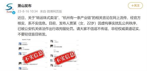 近日,在網絡上流傳起了“轉運珠市賣淫”以及“杭州有一條相關的產業鏈”,引起了社會各界的關注和討論。不過經過官方的審核,這些言論都是不實信息,對于群眾來講需要保持客觀冷靜的態度,不要信謠言,也不要傳謠言,這樣就會避免對社會秩序造成不必要的影響。